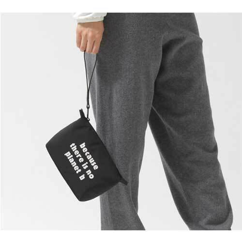 デイリーにトラベルに、コンパクトポーチ。ブランドメッセージ【BECAUSE THERE IS NO PLANET B】をデザイン。日常生活で使うアイテムは、環境への配慮をこめて。ペットボトル由来のリサイクル素材は、ソフトな風合いと軽量感が特長です。トラベルでもスマートな収納に活躍します。