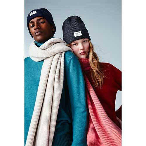 ペットボトルを資源としてアップサイクルしたニットキャップ。クリーンでスタイリッシュな表情が特長です。また、チクチク感のない滑らかな肌触りと毛羽立ちを軽減させています。少しのコトから優しいモノに。