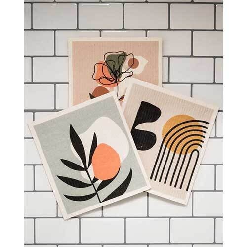 EARTH FRIENDLYオリジナルプリントの土に還るセルロースふきん。北欧やドイツでは、昔からおうちに1つはあると言われるセルロースのペーパースポンジ。キッチンやダイニングテーブルに置いていても、オシャレで可愛く、環境にやさしいだけじゃない実用性も兼ね備えたアイテムになっています。