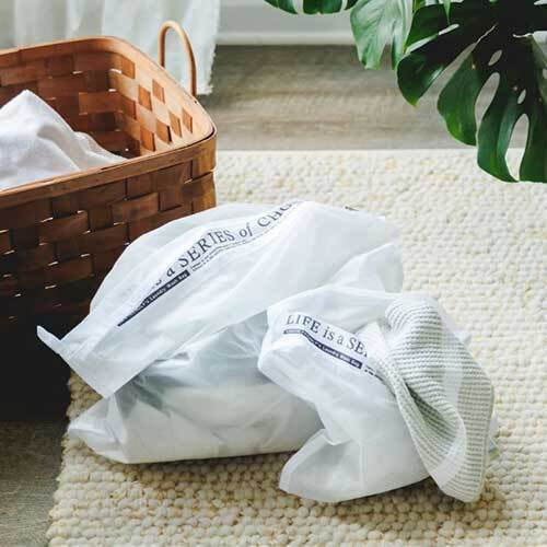 「Laundry Wash Bag(洗濯ネット)」は、洗濯時のマイクロプラスチックの流出を防ぐ、フィルター付きの洗濯ネット。通常の洗濯ネットは網目が大きく、衣類から出たマイクロプラスチックファイバーが排水路を通って、そのまま川や海に流出してしまいます。OCEAN FRIENDLYなお洗濯を実現してくれる商品です。